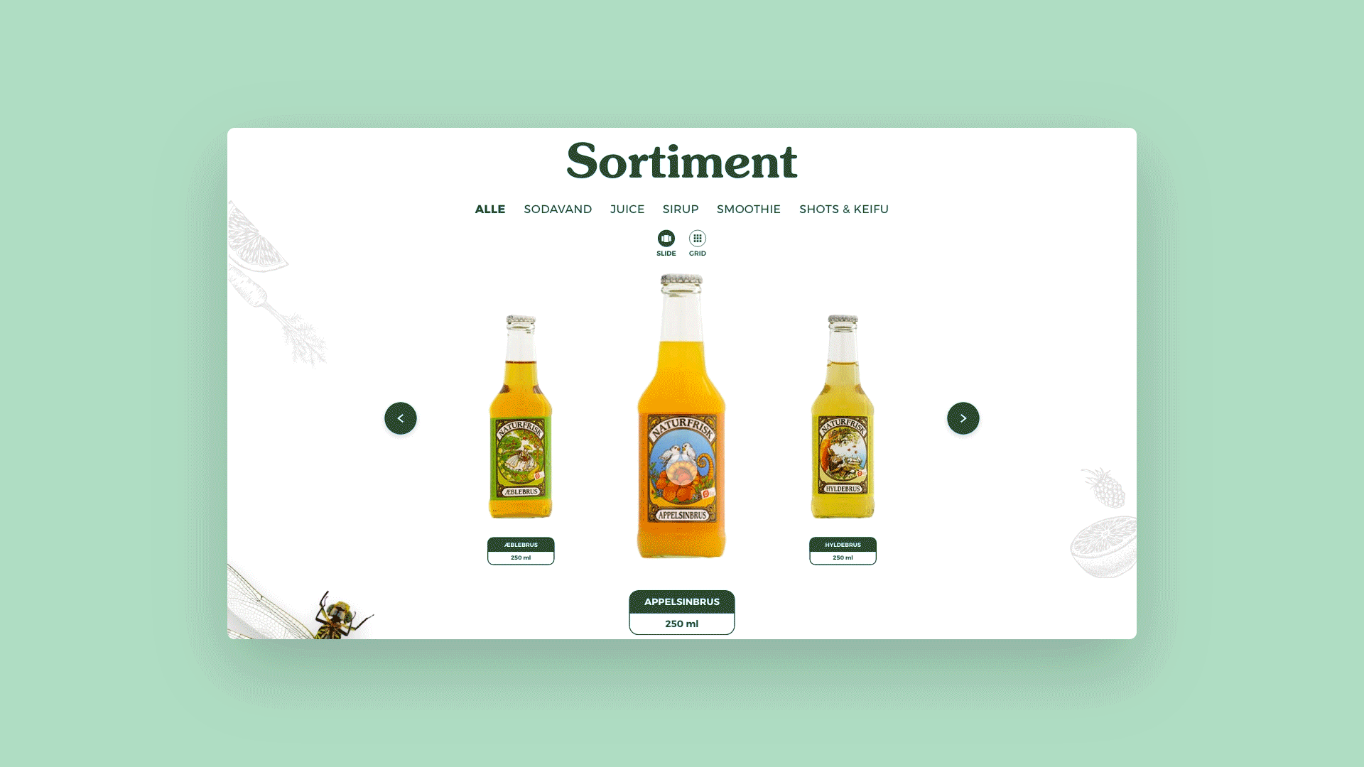 I made a total of 4 websites for Naturfrisk Group, and www.naturfrisk.dk is one of them. I also took new product photos of their sodas and juices for the website.